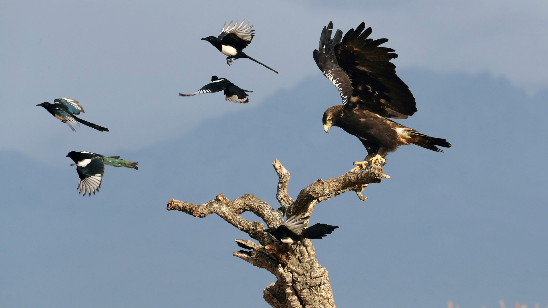 Les mammifères ne sont pas les seuls à dépendre des forêts de chênes-lièges pour la nidification et la chasse. Ces forêts abritent en effet plus de 160 espèces d'oiseaux, dont l'Aigle ibérique. Grâce aux efforts de conservation, la population d'Aigles ibériques est passée de seulement 50 couples reproducteurs dans les années 1970 à environ 485 couples reproducteurs. Malgré le rétablissement de sa population, l'aigle est toujours confronté à de nombreuses menaces, telles que la perte de ses proies et de son habitat, et les collisions avec les lignes électriques.